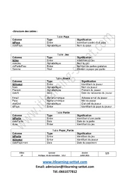 -Structure des tables :