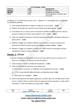 joueur en se basant sur la base de données du dossier 1.