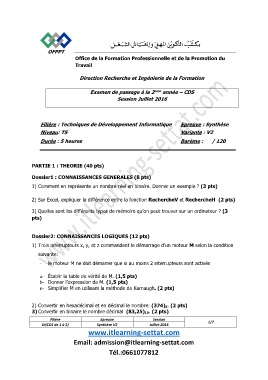Filière : Techniques de Développement Informatique Epreuve : Synthèse