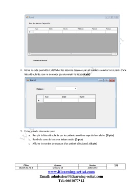 c. Afficher le nombre de séances d’un patient sélectionné. (6 pts)