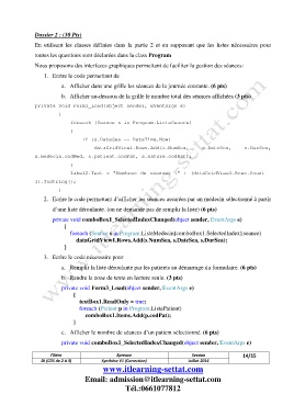 b. Afficher au-dessous de la grille le nombre total des séances affichées (3 pts)
