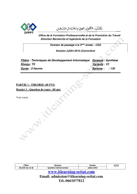 Filière : Techniques de Développement Informatique Epreuve : Synthèse