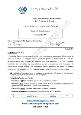 d’argent pour une opération donnée. « Fondation Co » utilise la base de données suivante :