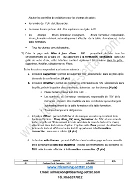 · Les numéros : du formateur enseignant, responsable de l'UV de la