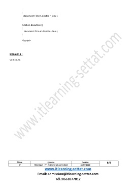{ document.f.tnum.disable = false ; } function desactiver() { document.f.tnum.disable = true ; } </script> Dossier 5 : Voir cours. Filière Epreuve Session 8/8 DI Théorique FF (Elément de correction) Juillet 2016 www.itlearning-settat.com Email: admission@itlearning-settat.com Tél.:0661077812