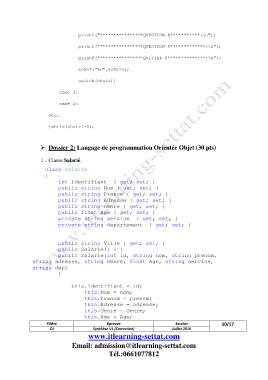 Dossier 2: Langage de programmation Orientée Objet (30 pts)