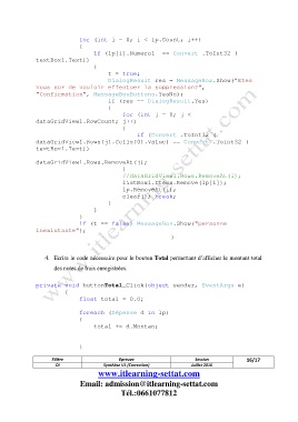 4. Ecrire le code nécessaire pour le bouton Total permettant d’afficher le montant total
