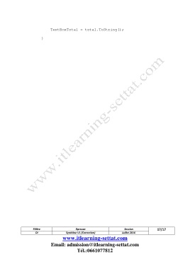 TextBoxTotal = total.ToString(); } Filière Epreuve Session 17/17 DI Synthèse V1 (Correction) Juillet 2016 www.itlearning-settat.com Email: admission@itlearning-settat.com Tél.:0661077812