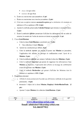 a. Créer la classe ListeMissions caractérisée par : (2 pts)