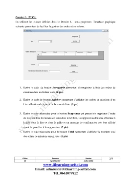 3. Ecrire le code nécessaire pour le bouton Supprimer qui permet de supprimer l’ordre