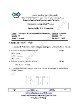 1. Convertir en binaire les nombres suiv ants (06 pts)