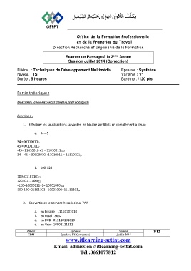 Filière : Techniques de Développement Multimédia Epreuve : Synthèse