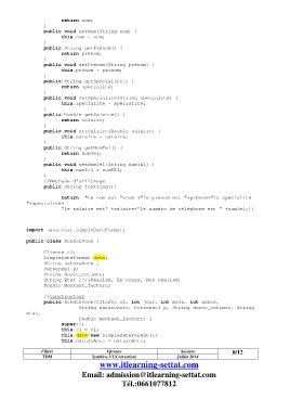 "le salaire est" +salaire+"le numéro de téléphone est " +numTel;}}